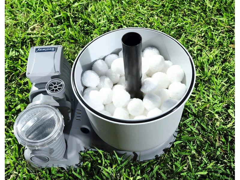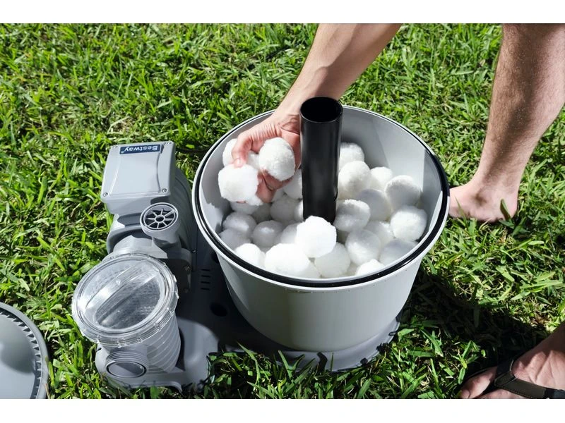 Lichtgewicht vervanging voor het zand in zandfilters. Zachte balletjes van 100% PET. Excellente filtratie en efficiëntie, lange levensduur, milieuvriendelijk en te reinigen d.m.v. handwas.100% recyclebaar en niet-giftig. Zeer licht in gewicht: 500 g Polysphere komt overeen met 18 kg zand. Backwash functie op het zandfilter niet gebruiken.