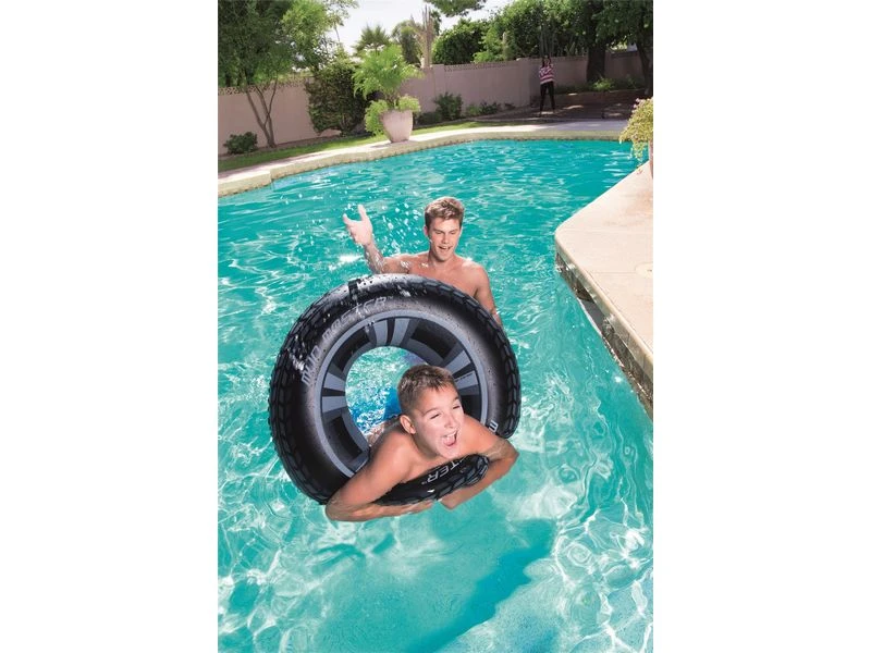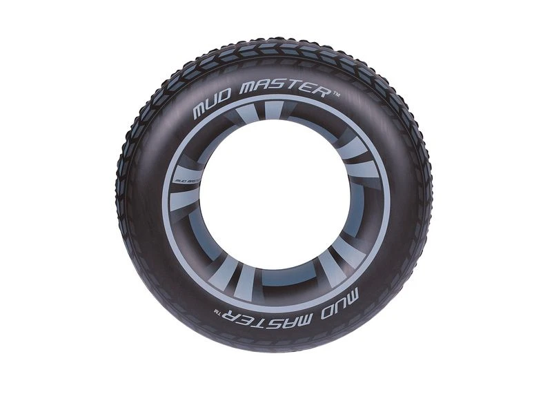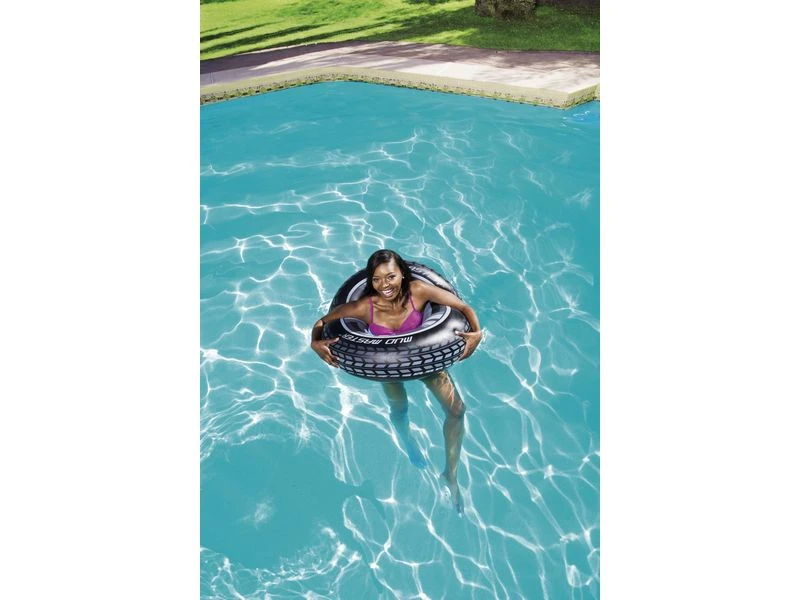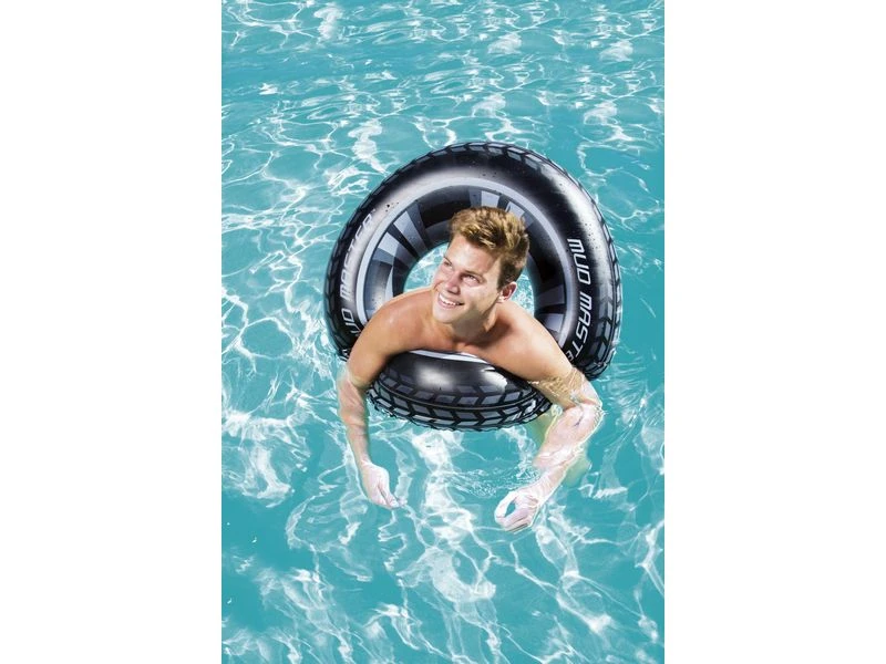 Supergrote zwemring in de vorm van een autoband. Leeftijd: 10+. Afmeting: Ø 80 cm.