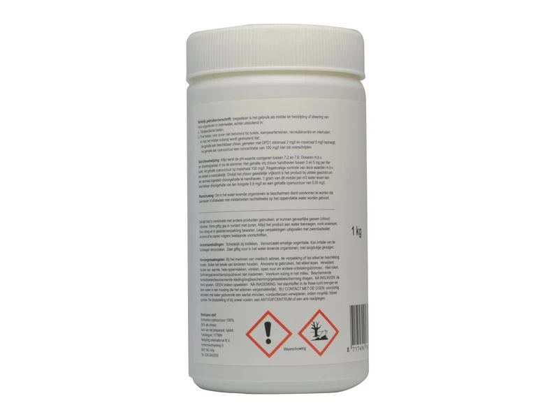Pool Power Long 200 gr. zijn langzaam oplossende chloor tabletten van 200 gr, die zorgen voor continu desinfectie van zwembadwater. Toelatingsnummer 11798 N. Altijd eerst de pH-waarde corrigeren tussen 7,2 en 7,6. Nooit mengen met andere (zwembad)chemicaliën. Bijzondere gevaren: oxiderend, bijtend. Uitsluitend gebruiken in combinatie met een (grote) chloordrijver. Verpakking 1 kg.