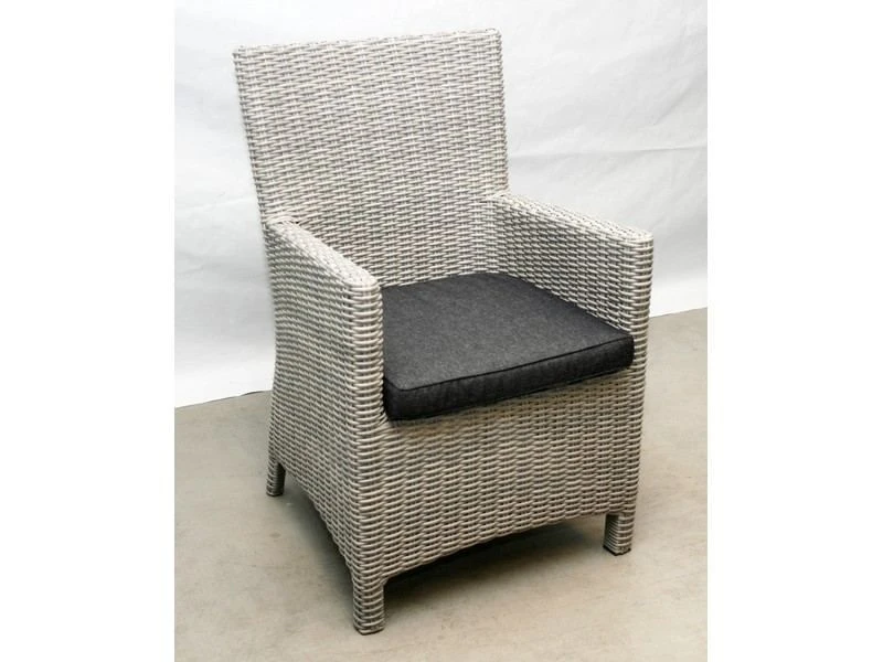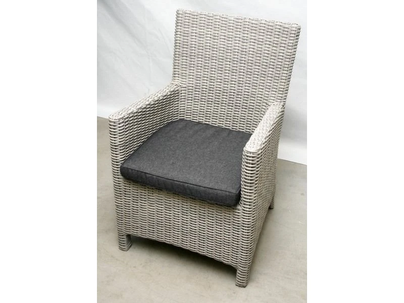 Unieke vorm van tuintafel, daardoor heeft deze set een sfeervolle uitstraling. Tafel heeft een aluminium frame en het blad is gemaakt van spraystone. Deze tuintafel heeft daardoor een natuurlijke uitstraling. De tuinstoel is gemaakt van een aluminium frame met een gevlochten draad van kunststof. Het kussen is door het polyester materiaal kleurecht en vuil en waterafstotend. Stoel wordt geleverd inclusief zit en rugkussens.